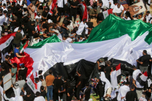 Rallying in Baghdad’s central Tahrir Square, thousands of Iraqis burned the Israeli flag and waved Palestinian banners while chanting anti-American and anti-Israeli slogans.